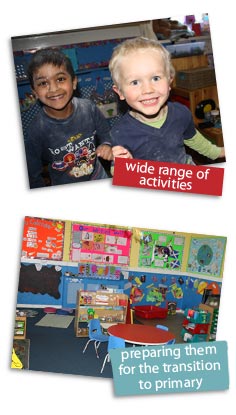 The large, bright 'classroom' provides flexible accommodation enabling children to enjoy a wide range of activities. Our bright pre schoolers are tempted by large and small construction, games, puzzles, books, imaginative and physical play and achieve many concepts by using water, sand and paint.